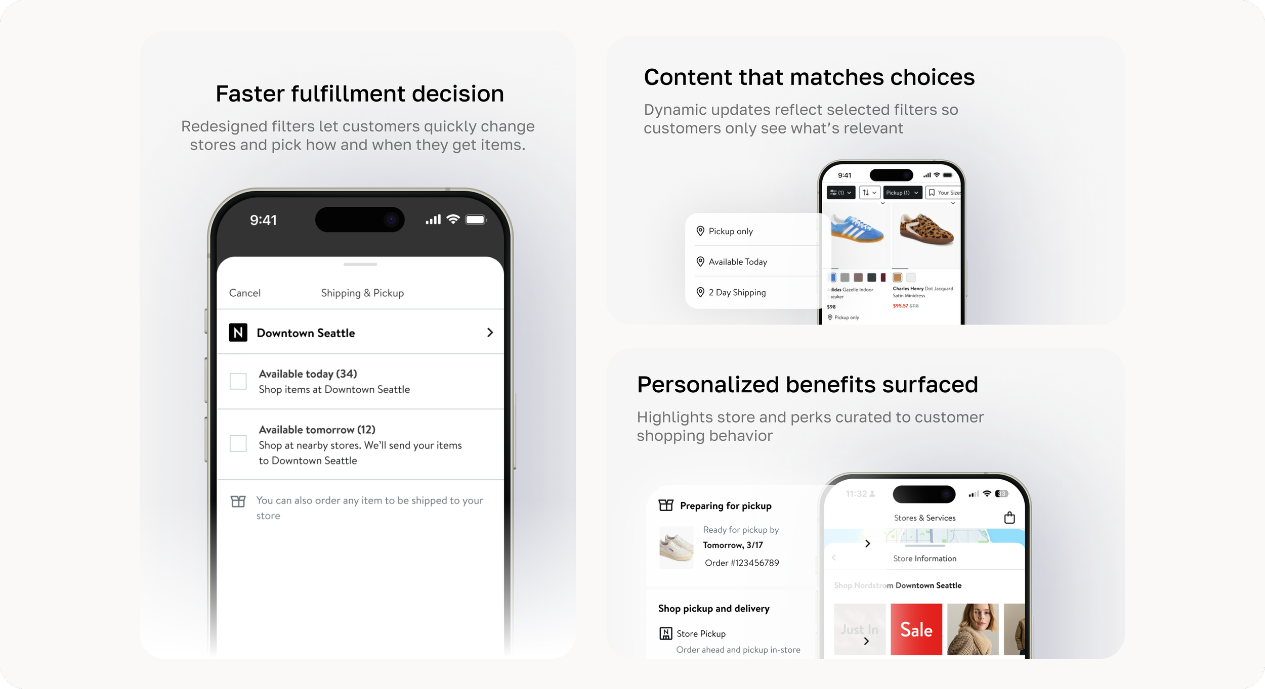We tested, validated, and successfully launched these experiences on Nordstrom and Nordstrom Rack stores for App, Desktop and Mobile Web