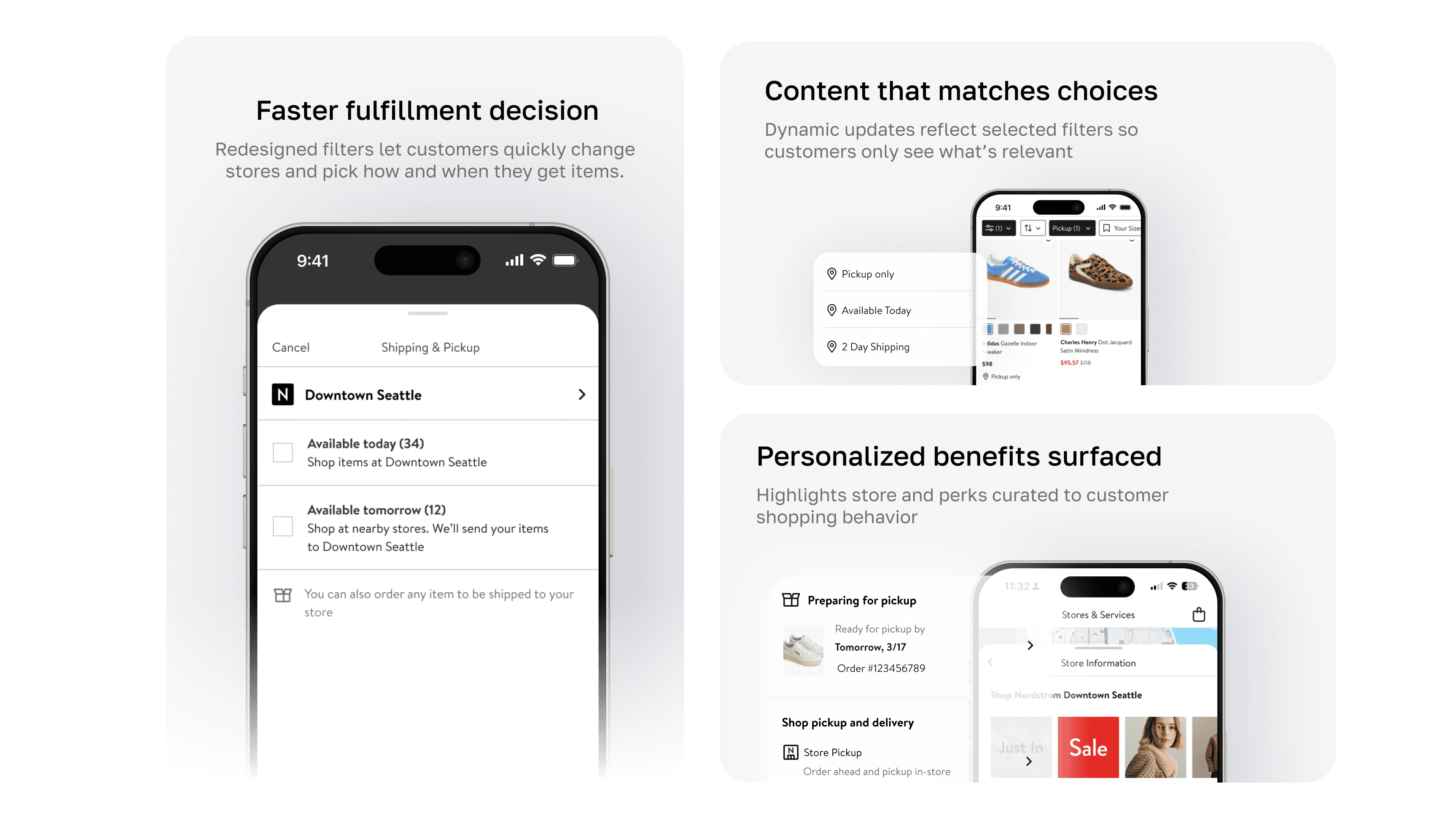 I redesigned the filter and navigation flow to make store selection and switching easier, allowing customers to quickly see fulfillment options based on their selected store. Customers can access relevant inventory earlier, increasing engagement with store pickup.