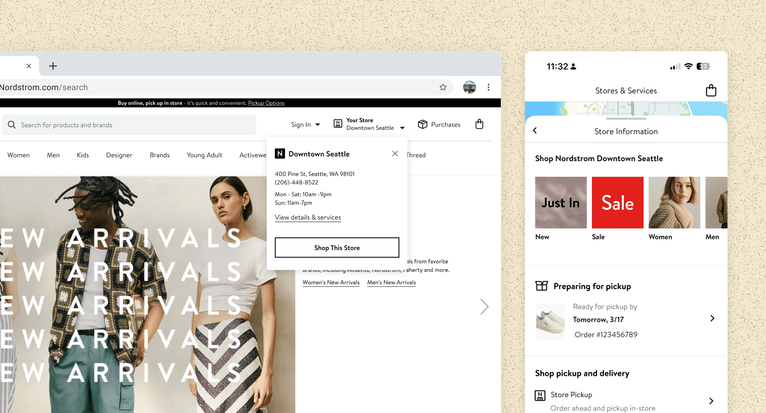 Customers expected immediate access to store information when landing on the site, but store entry points were difficult to find and inconsistent across platforms. This made it hard for customers to set or change their store and evaluate fulfillment options, limiting engagement with store inventory. Internal testing showed that improving store access significantly increased engagement and conversion