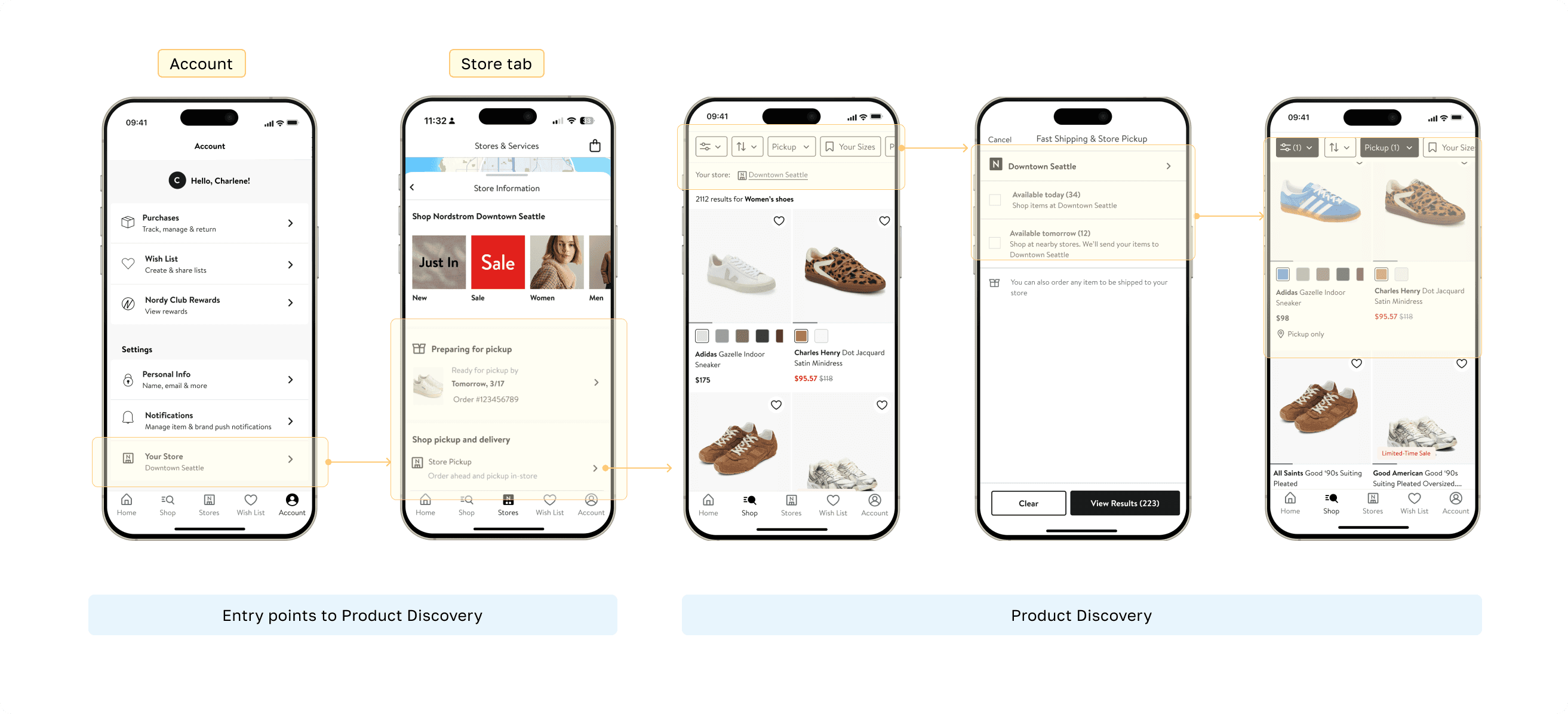 The challenge was making store selection a core part of discovery without adding navigation complexity. I introduced a persistent "Your store" entry point and ensured store selection became a foundational input to discovery, allowing customers to browse inventory based on their selected store throughout the shopping journey.