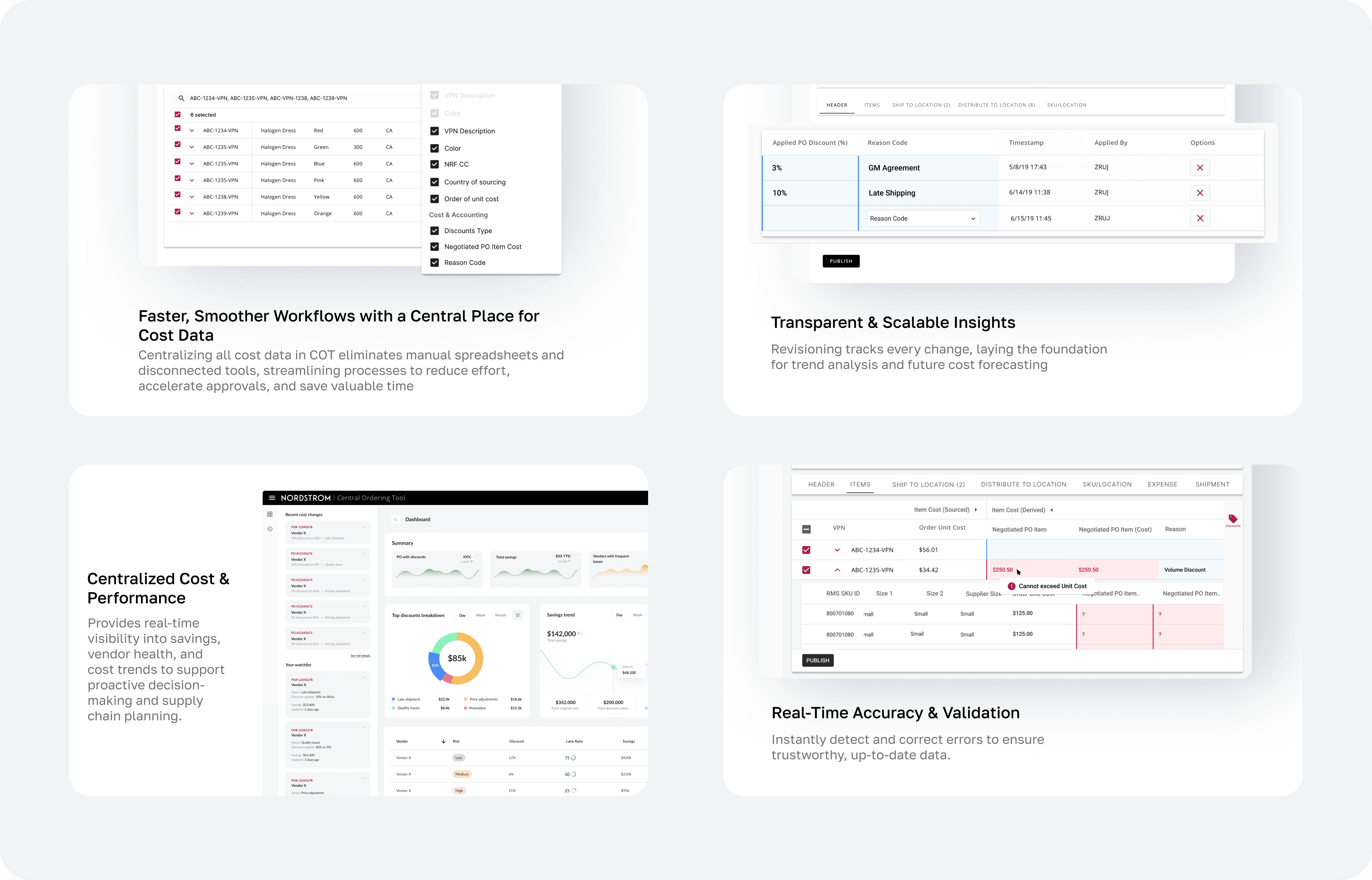 Cost changes impact multiple downstream partners, including finance, planning, and inventory teams. Creating shared audit views and reporting tools would improve transparency and help teams stay aligned using the same source of truth.